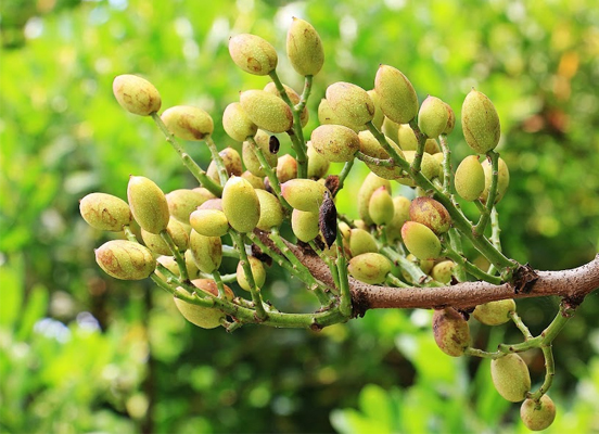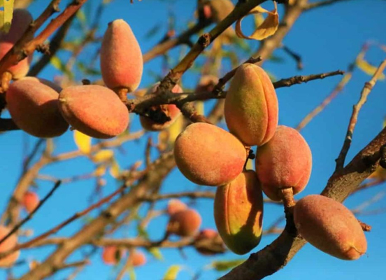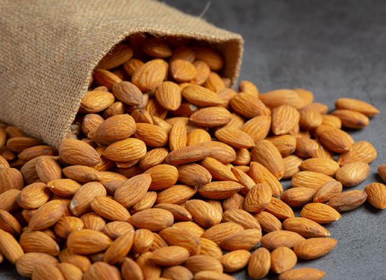 Almonds are the edible seeds of the almond tree (Prunus dulcis). They are native to the Middle East and South Asia. Almonds are widely known for their nutritional benefits and rich, nutty flavor. They are commonly consumed on their own, raw or roasted, or used as ingredients in various dishes, such as baked goods, desserts, and savory dishes. Almonds are also processed to produce almond milk, almond flour, almond butter, and almond oil, which are used in different culinary applications.