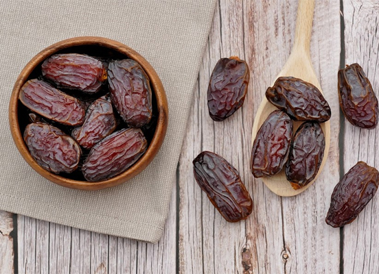 Dates are the fruits of the date palm tree (Phoenix dactylifera) and are cultivated in many tropical and subtropical regions worldwide. They are popular for their rich, sweet taste and chewy texture. Dates can be consumed in their natural form or used as an ingredient in various culinary preparations, including desserts, smoothies, and baked goods. They are also commonly used as a natural sweetener in many dishes.