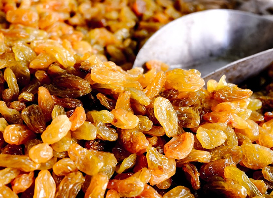 Raisins are dried grapes that are commonly consumed as a snack or used as an ingredient in cooking and baking. They can be made from a variety of grape types, with the most popular being the seedless Thompson seedless grape. Raisins are produced by allowing grapes to dry in the sun or in a food dehydrator, which causes them to lose their original water content, resulting in a shriveled, dry fruit with a sweet flavor.